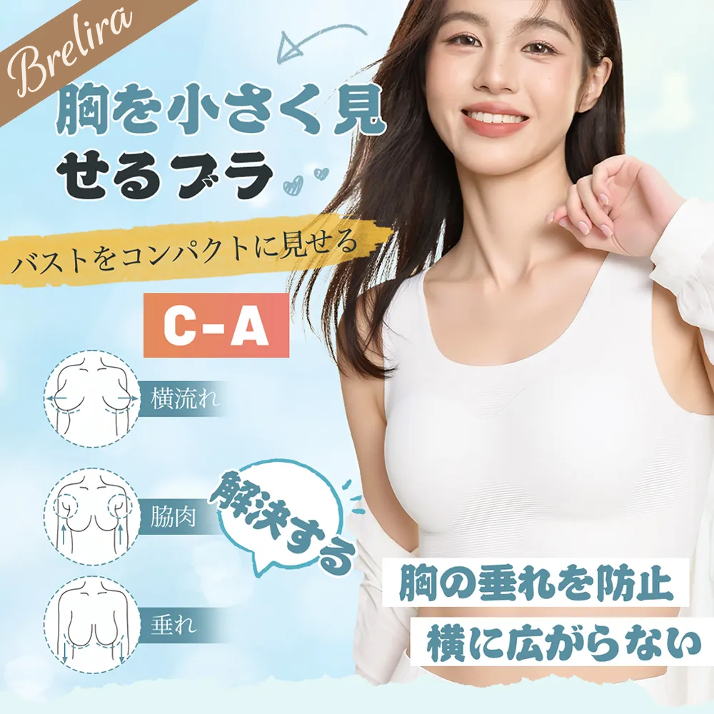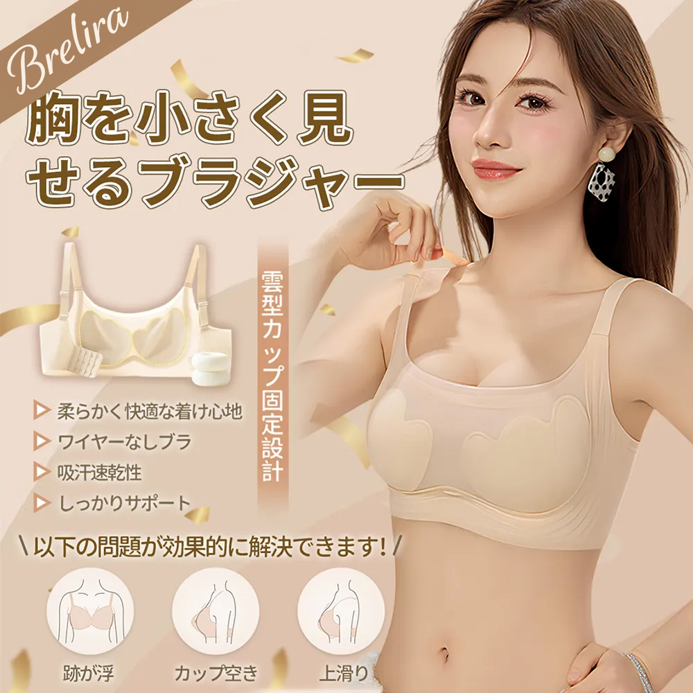 胸を小さく見 せるブラジャー 薄型で通気性良好